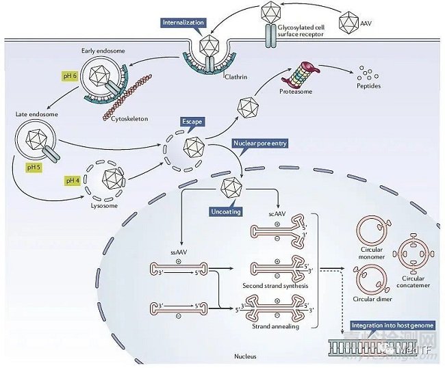 腺病毒相關(guān)病毒(adeno-associated virus,AAV)是一種無法自主復(fù)制、無包膜單鏈DNA病毒。具有以下幾種優(yōu)點: