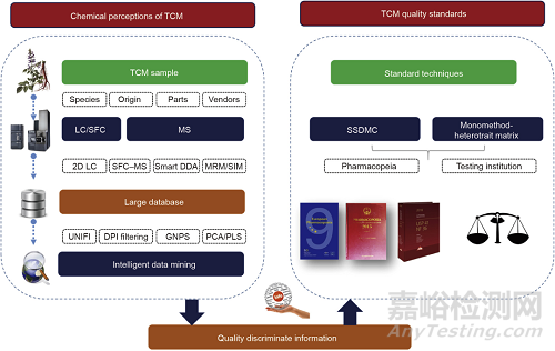 圖1. 良好中藥質量標準的深層次中藥化學認知。智能DDA:智能觸發(fā)數(shù)據(jù)依賴型采集;MRM:多反應監(jiān)測;SIM:選擇性離子監(jiān)測;DPI:診斷產(chǎn)物離子過濾;GNPS:全球天然產(chǎn)物協(xié)會分子網(wǎng)絡;PCA:主成分分析;PLS:偏最小二乘回歸。