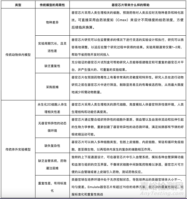 正如本文所討論的,器官芯片技術(shù)可以幫助研究人員克服與傳統(tǒng)體外和體內(nèi)模型相關(guān)的一些挑戰(zhàn)。下表總結(jié)了一些最常見的挑戰(zhàn)以及器官芯片可以帶來什么樣的幫助。