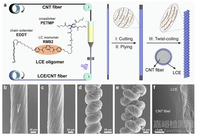 圖1. LCE/CNT復(fù)合纖維的制備與表征