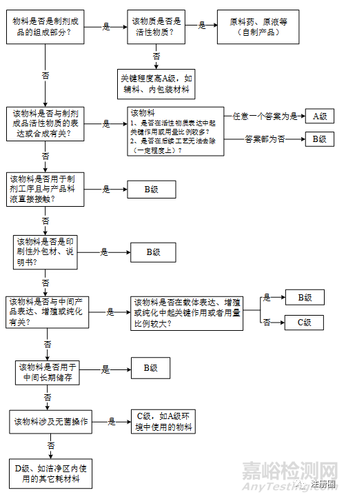 2)從物料在藥品生產(chǎn)工藝過(guò)程中的關(guān)鍵程度分析。