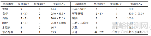 ▲ 表 2 2005—2021 年中藥 NCHAIDs 的結(jié)構(gòu)類型及批準(zhǔn)情況