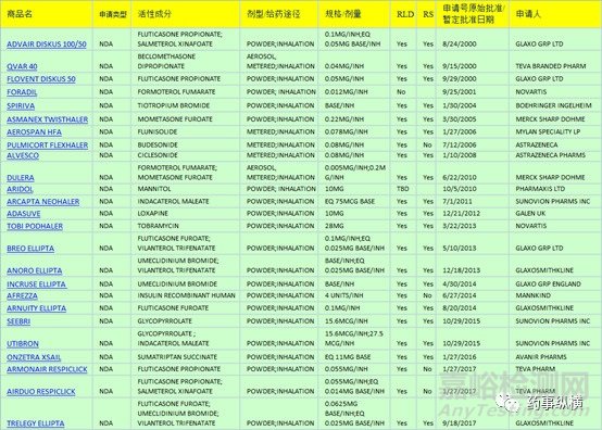 下圖即為近年來FDA批準(zhǔn)的部分干粉吸入制劑。