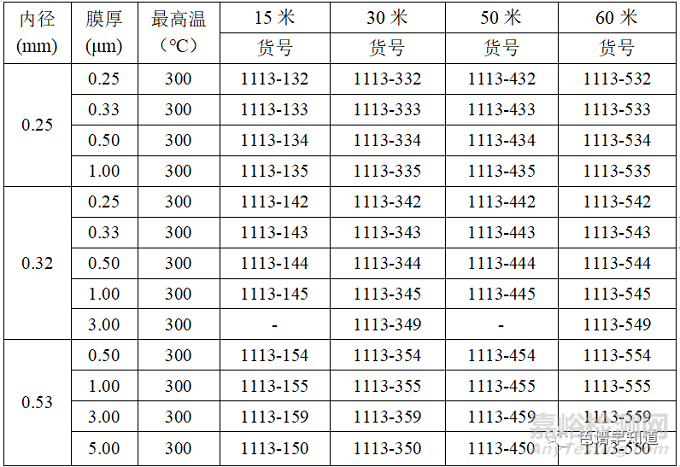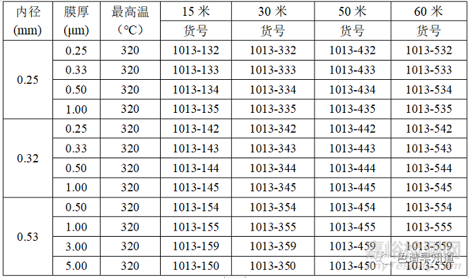 柱長(zhǎng):30m 內(nèi)徑:0.32mm 膜厚:0.25um