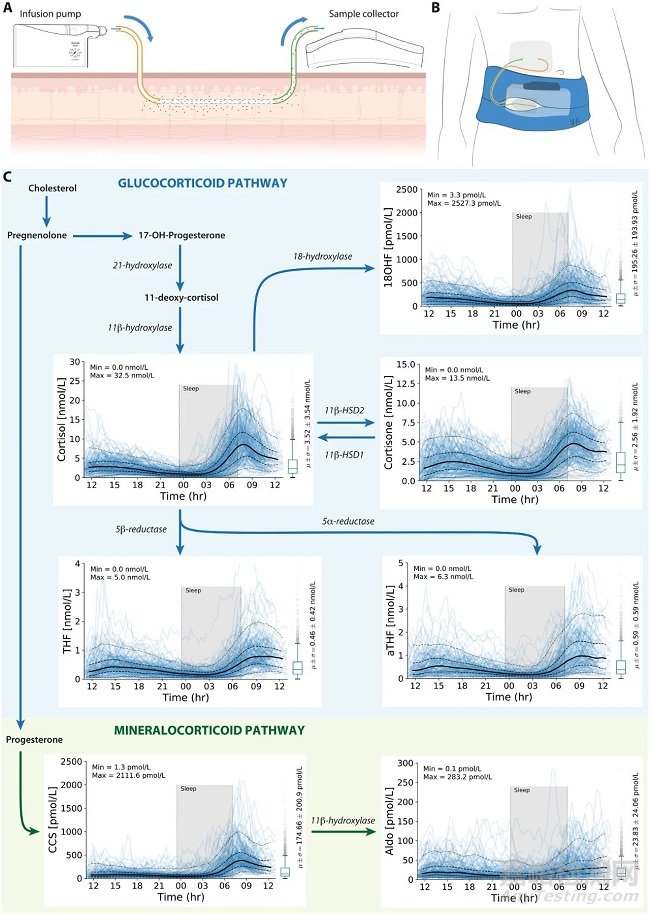 一個(gè)主要的問題是,如果只使用一個(gè)時(shí)間點(diǎn),就很難或不可能理解激素測(cè)試的意義,因?yàn)檫@沒有考慮到荷爾蒙的節(jié)律。這反過來又導(dǎo)致診斷延誤和錯(cuò)過治療干預(yù)機(jī)會(huì)。以前,建立準(zhǔn)確圖像的唯一方法是在住院期間采集多個(gè)血液樣本,這不僅耗費(fèi)時(shí)間和不便,而且壓力也很大。