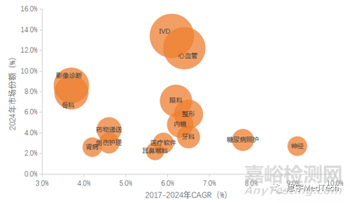 (2024年全球醫(yī)療器械細(xì)分領(lǐng)域市場規(guī)模及占比)