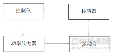 電動(dòng)振動(dòng)試驗(yàn)系統(tǒng)主要由傳感器、控制儀、功率放大器、振動(dòng)臺(tái)四個(gè)部分組成,如圖1所示。傳感器固定在振動(dòng)臺(tái)臺(tái)體或夾具甚至樣品的合適位置處,將采集到的信號(hào)輸入至控制儀中,經(jīng)過電腦軟件的分析處理,再由控制儀將輸出信號(hào)傳送至功率放大器,再由功率放大器控制振動(dòng)臺(tái)的激振力,達(dá)到設(shè)定的試驗(yàn)條件。由此可見,整個(gè)環(huán)節(jié)形成了一個(gè)閉環(huán),如果電動(dòng)振動(dòng)試驗(yàn)系統(tǒng)無法正常運(yùn)行,在排除設(shè)備本身故障的前提下,那么必定是此閉環(huán)中的某一個(gè)環(huán)節(jié)出現(xiàn)了開環(huán)現(xiàn)象所致。