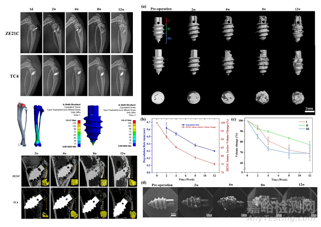 圖2 ZE21C鎂合金縫合錨釘?shù)捏w內(nèi)降解行為