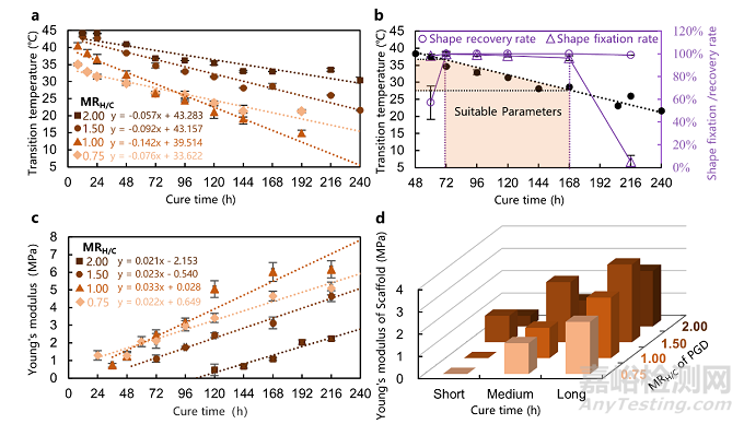 圖2 通過材料合成參數(shù)調(diào)控PGD材料的形狀記憶及力學(xué)性能以匹配髓核植入需求