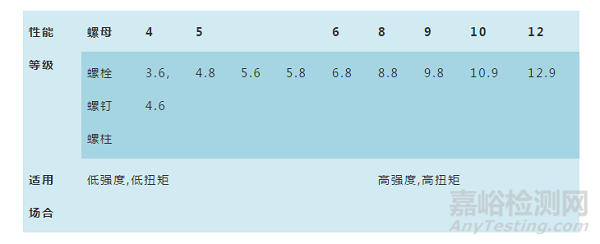 表1.1:螺栓、螺釘、螺柱和螺母性能等級