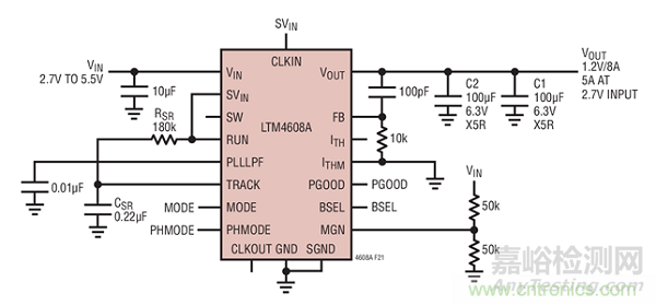 LTM4608A:具有 SSFM 的 8 A、2.7 V 至5.5 IN DC/DC µModule 降壓型穩(wěn)壓器