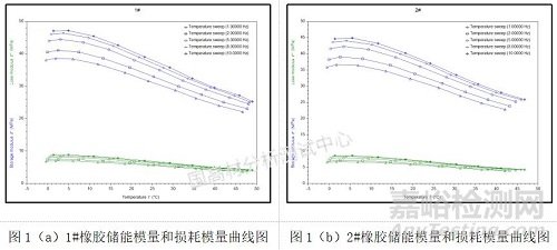 2. 橡膠在0~50℃范圍里儲能模量和損耗模量隨溫度增加逐漸減小。