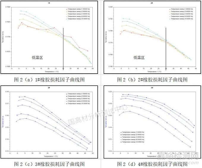 通過多頻溫度斜坡的方法,我們對4種橡膠在不同頻率下的檢測結(jié)果進行了對比,可以得出以下結(jié)論: