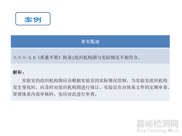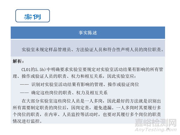 調(diào)研期間,機(jī)構(gòu)和從業(yè)人員普遍反映希望能夠了解更多認(rèn)可案例。結(jié)合行業(yè)關(guān)注熱點(diǎn)問題,我們再次推出認(rèn)可評審案例系列。本期將為大家?guī)鞢NAS-CL01《檢測和校準(zhǔn)實(shí)驗(yàn)室能力認(rèn)可準(zhǔn)則》中“通用要求”及“結(jié)構(gòu)要求”的典型案例。