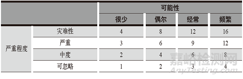 根據(jù)風險系數(shù)(RPN)的不同,可將風險分為低風險、中風險和高風險三類。其中,RPN=1~4為低風險;RPN=6~9為中風險;RPN=12~16為高風險。
