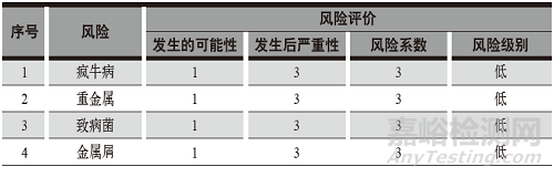 對牛骨膠囊用明膠安全事故的管理資料進行分析,發(fā)現(xiàn)其安全風險有:瘋牛病,來源于患病的牛只以及攜帶瘋牛病病毒的牛骨(粒);重金屬[3],來源于明膠生產(chǎn)用加工助劑重金超標后引入;致病菌,來源于生產(chǎn)環(huán)境和操作人員;金屬屑,來源于生產(chǎn)設備的磨損。
