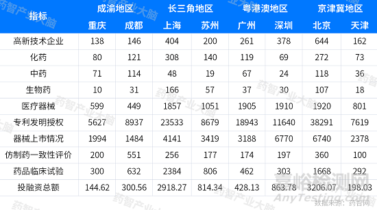 上述數(shù)據(jù)顯示,重慶在生物醫(yī)藥產(chǎn)業(yè)的數(shù)量與成都相當(dāng),但是藥品企業(yè)數(shù)量低于成都,器械企業(yè)高于成都,領(lǐng)域的創(chuàng)新創(chuàng)業(yè)水平遠(yuǎn)低于成都,投資活躍度低于成都,總體看,重慶的生物醫(yī)藥產(chǎn)業(yè)綜合實(shí)力相比成都尚有一定差距。