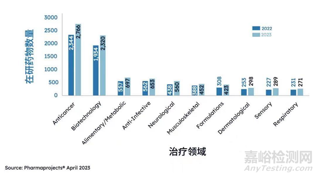 ▲2022和2023年按年份和治療領(lǐng)域分列的中國(guó)管線