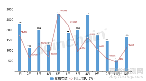 圖表1 2022年度起搏器全球貿(mào)易次數(shù)情況