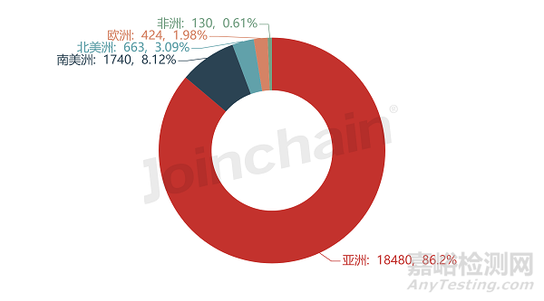 圖表4 2022年度各洲際起搏器進口貿(mào)易次數(shù)(單位:次)及占比情況