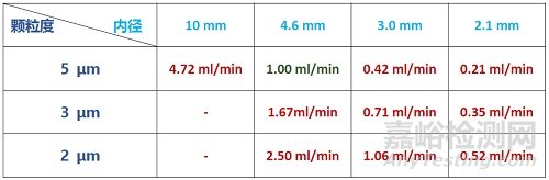 對于內(nèi)徑不同、顆粒度不同的色譜柱之間最佳流速的轉換有個經(jīng)驗公式,即: