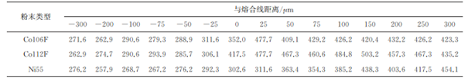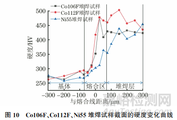 表2 Co106F、Co112F、Ni55堆焊試樣截面的硬度測試結(jié)果