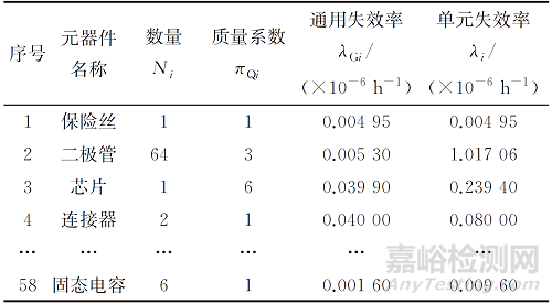 式中:λGi為第i種元器件在環(huán)境類別為NSB下的通用失效率;πQi為第i種元器件質(zhì)量等級(jí);Ni為第i種元器件數(shù)量;n為元器件數(shù)量。