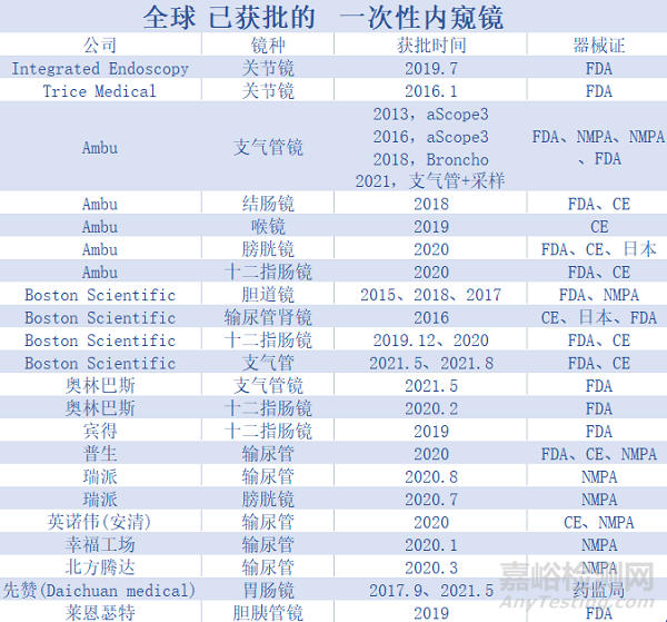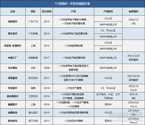 在這片藍(lán)海中已經(jīng)有部分公司揚(yáng)帆。據(jù)不完全統(tǒng)計(jì),本文梳理了研發(fā)生產(chǎn)一次性內(nèi)窺鏡的企業(yè),如下圖: