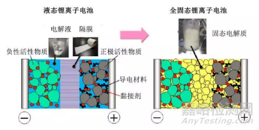 圖1 液態(tài)和全固態(tài)鋰離子電池結(jié)構(gòu)差異