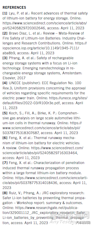 電池間間隔物(inter-cell spacers )的使用是阻止熱傳播的有效手段。特別是增壓(超過350 kW),對設(shè)計應(yīng)用高能量的電池施加額外的電化學(xué)和熱應(yīng)力。高能電池因此也必須作為大功率電池發(fā)揮作用。因此,下一代電動汽車的安全挑戰(zhàn)將顯著增加。