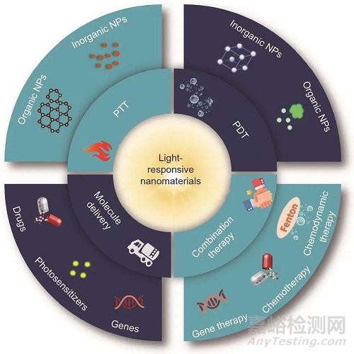 圖1. 光響應(yīng)納米材料在癌癥治療中的應(yīng)用示意圖。
