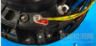 某抽檢機(jī)構(gòu)認(rèn)為如圖1和圖2所示產(chǎn)品接地符號在連接導(dǎo)線時(shí)被取下的部件上,不符合GB?4706.1-2005《家用和類似用途電器的安全 第1部分:通用要求》標(biāo)準(zhǔn)7.8條款“符號不應(yīng)放在螺釘、可取下的墊圈或在連接導(dǎo)線時(shí)能被取下的其他部件上”的要求。