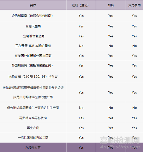 國會(huì)已授權(quán)FDA對器械企業(yè)收取年度企業(yè)注冊(登記)費(fèi),有關(guān)需要登記和支付費(fèi)用的設(shè)備企業(yè)類型的詳細(xì)列表如下(對于小企業(yè)的年度企業(yè)注冊費(fèi)沒有豁免或削減):