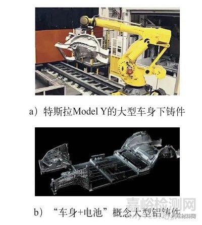 圖1所示為高真空壓鑄件和普通真空壓鑄件對(duì)比照片。圖2所示為通用汽車公司生產(chǎn)的鋁減振塔鑄件和鎂門內(nèi)鑄件。圖3所示為特斯拉公司采用先進(jìn)壓鑄技術(shù)生產(chǎn)的大型鋁鑄件。