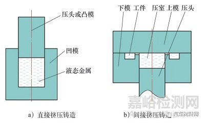 依據(jù)擠壓鑄造過程中所施加壓力的作用方式,擠壓鑄造工藝主要分為直接擠壓鑄造和間接擠壓鑄造兩大類[22,23],如圖10所示。