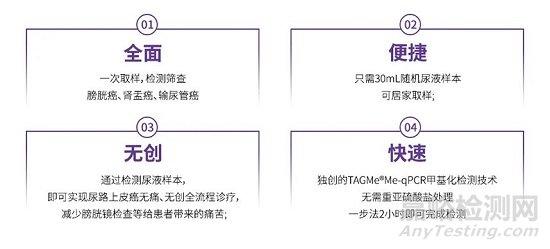 本次獲批的產(chǎn)品為基于全癌標(biāo)志物的尿路上皮癌檢測(cè)產(chǎn)品“TAGMe DNA Methylation Detection Kit (qPCR) for Urothelial Cancer”,是全球首個(gè)獲得美國(guó)FDA突破性認(rèn)定的自主研發(fā)的全癌標(biāo)志物的尿路上皮癌(膀胱癌,輸尿管癌和腎盂癌)的尿液同步檢測(cè)產(chǎn)品。該產(chǎn)品依托于奕譜生物獨(dú)創(chuàng)的全癌標(biāo)志物和甲基化檢測(cè)平臺(tái)Me—qPCR,是覆蓋癌癥篩查、輔助診斷、復(fù)發(fā)監(jiān)測(cè)等方面的全新選擇。