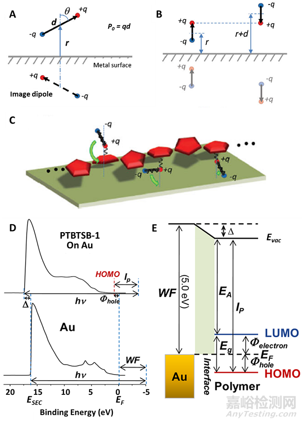 圖2. 兩性離子CPs改變金屬電極的功函數(shù)