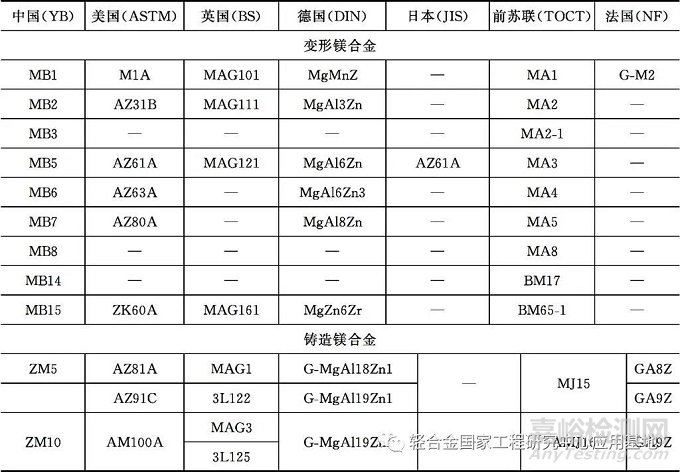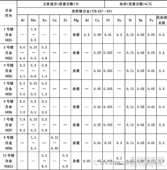 表3 國(guó)產(chǎn)鎂合金的牌號(hào)和主要成分