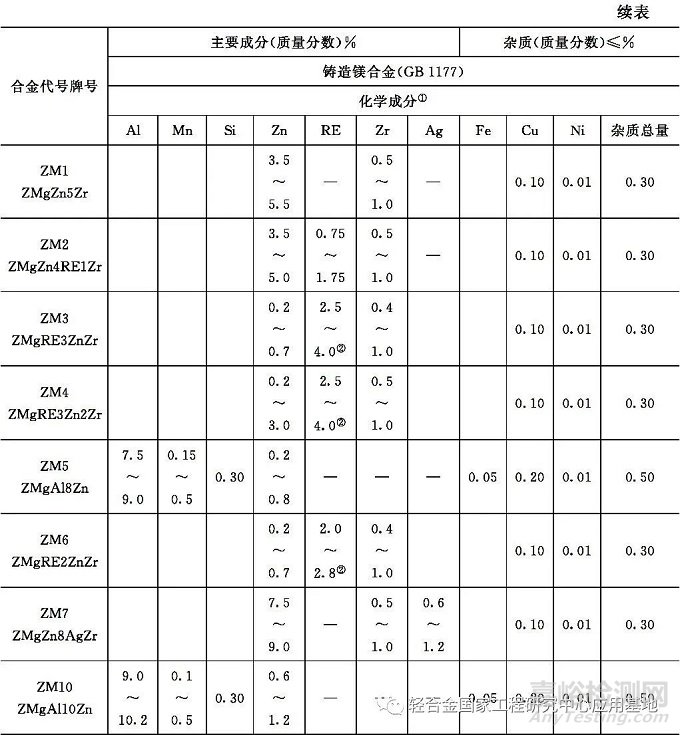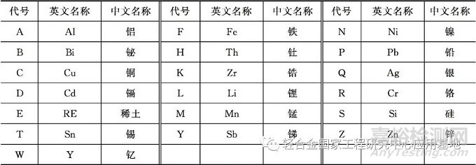 表1 鎂合金中合金元素代號(hào)