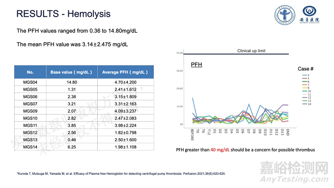 整個實驗期間未發(fā)生機(jī)械故障,操作順利。血氣檢測結(jié)果顯示,BreathMo®氧合效果良好,氣體交換效率優(yōu)異,可穩(wěn)定維持在高于 300mmHg 水平。實驗動物的血漿游離血紅蛋白(PFH)在可接受的范圍內(nèi)(0.36 - 14.80 mg/dL),PFH均值為 3.14±2.475 mg/dL,遠(yuǎn)低于臨床溶血參考閾值 40 mg/dL。