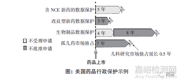 獨(dú)占(exclusivity)指在藥品上市保護(hù)期,根據(jù)法規(guī)規(guī)定,延遲或者禁止競爭藥品上市。與專利相比,在性質(zhì)上,獨(dú)占是藥品監(jiān)督管理部門提供的一種行政保護(hù),專利是專利行政部門在藥品開發(fā)過程中授予的財(cái)產(chǎn)權(quán)[1]在保護(hù)期限上,獨(dú)占通常從藥品上市之日開始計(jì)算,專利可以隨時(shí)頒發(fā)或到期,與藥物的批準(zhǔn)狀態(tài)無關(guān),二者可以同時(shí)或不同時(shí)運(yùn)行[2]。獨(dú)占涉及針對創(chuàng)新藥的數(shù)據(jù)保護(hù)(數(shù)據(jù)獨(dú)占),以及針對孤兒藥、完成兒科研究計(jì)劃品種的市場獨(dú)占[3,4]。理論上,數(shù)據(jù)保護(hù)僅針對申請人自行取得、未公開披露的試驗(yàn)數(shù)據(jù),并不禁止仿制藥企業(yè)自行開展臨床試驗(yàn)獲取數(shù)據(jù);市場獨(dú)占不涉及試驗(yàn)數(shù)據(jù)保護(hù)。但在數(shù)據(jù)保護(hù)下,仿制藥企業(yè)不會(huì)選擇自行開展臨床試驗(yàn),數(shù)據(jù)保護(hù)和市場獨(dú)占往往能達(dá)到相似的市場獨(dú)占效果。