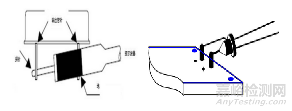 示波器探頭的地線長(zhǎng)度約13cm,自身電感約為80nH,共模電流會(huì)在地線夾子上產(chǎn)生一定量不可忽略的尖峰電壓。在實(shí)際測(cè)試時(shí),地線夾通常會(huì)以環(huán)形出現(xiàn),所以很容易接收到空間輻射。測(cè)試端子和地線夾構(gòu)成的環(huán)路就像天線一樣在工作,地線環(huán)的面積越大,開關(guān)過(guò)程中獲取的噪聲就越大,影響到紋波的正確測(cè)試。為減小地線夾過(guò)長(zhǎng)所造成的影響,探頭應(yīng)該直接靠在輸出管腳兩端,這樣信號(hào)和地相連處的地線環(huán)面積就很小了,這就是靠測(cè)法。測(cè)試時(shí)去掉示波器探頭的地線夾和探頭帽子,直接靠在輸出管腳上進(jìn)行測(cè)試,如果輸出管腳間距稍大,示波器探頭不能直接靠上,可以用自制地線環(huán)進(jìn)行測(cè)試,如下圖所示。