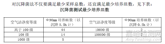②沉降菌測試時,采樣點的位置可以與懸浮粒子測試點相同。工作區(qū)采樣點的位置距地面0.8-1.5m(略高于工作面);根據(jù)需要可在關(guān)鍵設(shè)備或關(guān)鍵工作活動范圍處增加測點。采樣點的布置應(yīng)力求均勻,避免采樣點在某局部區(qū)域過于集中,某局部區(qū)域過于稀疏。沉降菌測試的最少采樣點數(shù)可見下表: