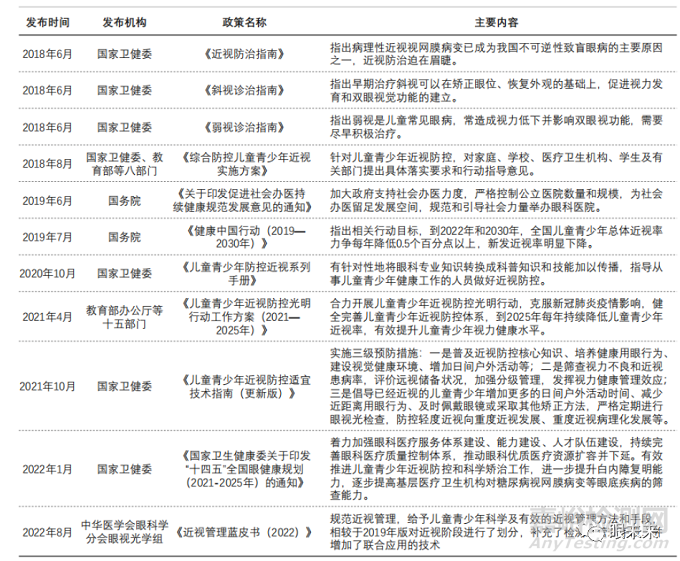 (國內近視防控相關政策)(來源:弗若斯特沙利文)