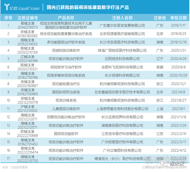 (國內已獲批的弱視訓練康復數(shù)字療法產(chǎn)品)(來源:弗若斯特沙利文)