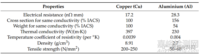 表1 銅和鋁的性能比較。來源IACS: International Annealed Copper Standard