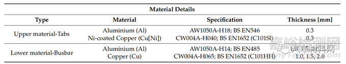 表2 Tab和Busbar材料信息