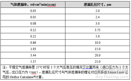 表2 氣體泄漏率與泄漏孔徑尺寸對(duì)應(yīng)關(guān)系