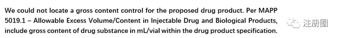 因此,注射劑每瓶總含量(gross content per vial)便成為藥品申報(bào)資料的審核關(guān)注點(diǎn),不少企業(yè)收到關(guān)于這方面的缺陷信。
