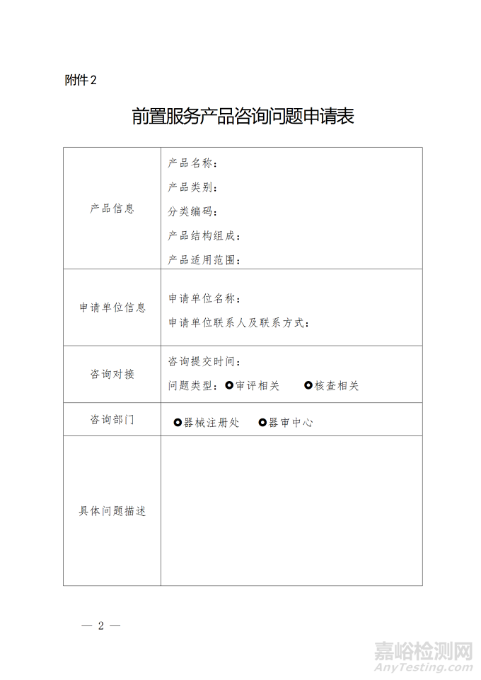 前置服務產品咨詢問題申請表